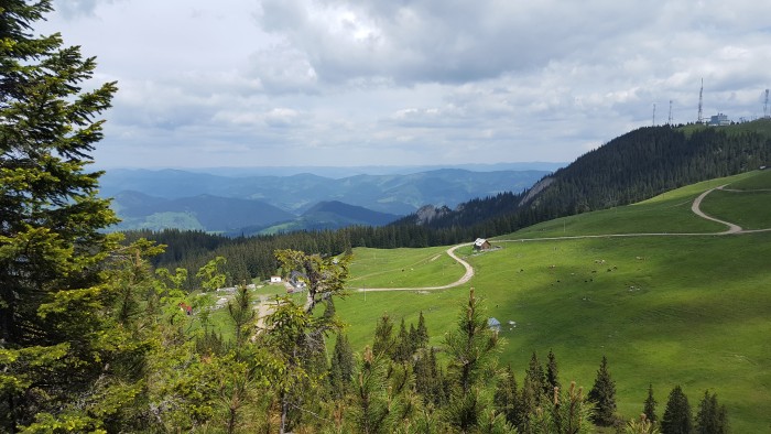 Din spatele Cabanei Rarău, un hotelaş cu aspect din vremurile ONT, se fac două trasee spre Pietrele Doamnei – o formaţiune stâncoasă spectaculoasă. Am ales traseul mai uşor la dus, ca apoi să ne întoarcem pe drumul mai greu.