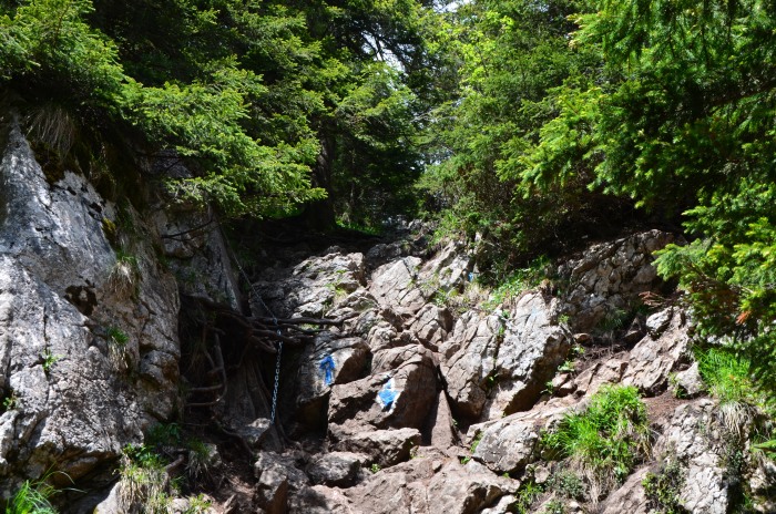 La început mergi prin pădure, după care dai de stânci pe care te caţări ţinându-te de nişte lanţuri puse special pentru asta. Deşi pentru cei neobişnuiţi cu drumeţiile montane, treaba cu lanţurile ar putea părea descurajantă, eu vă recomand să faceţi efortul. Priveliştea de sus este fantastică.